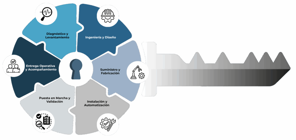 Nuestra metodología se basa en un enfoque turnkey, esto nos permite garantizar eficiencia, trazabilidad y cumplimiento normativo en cada etapa.